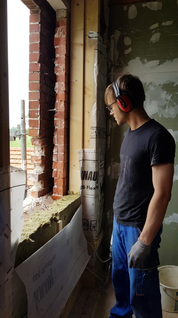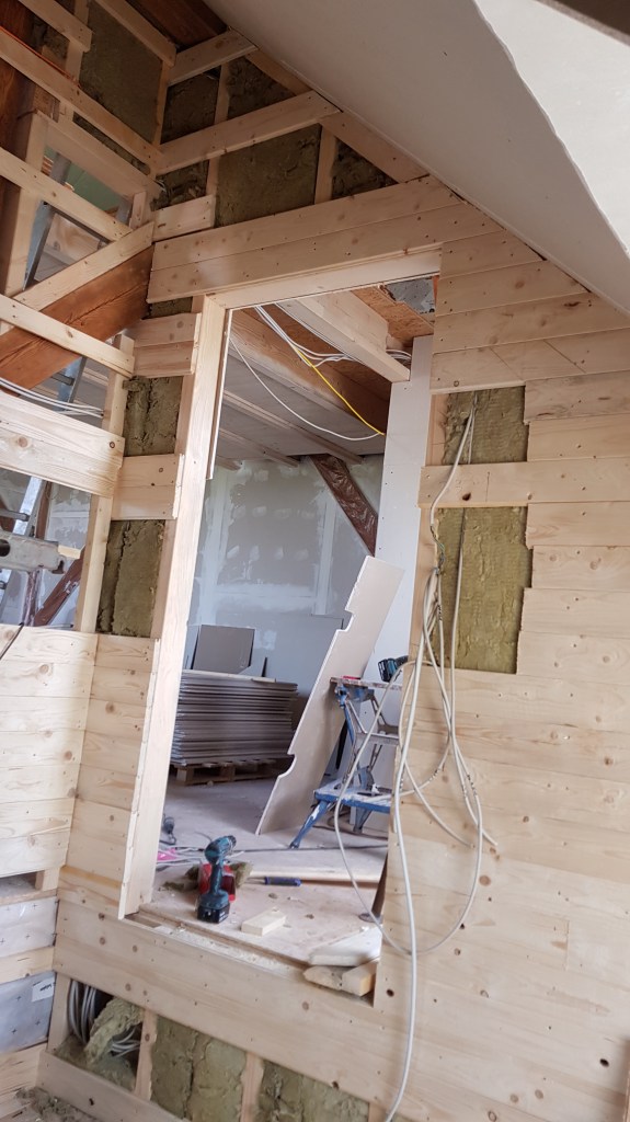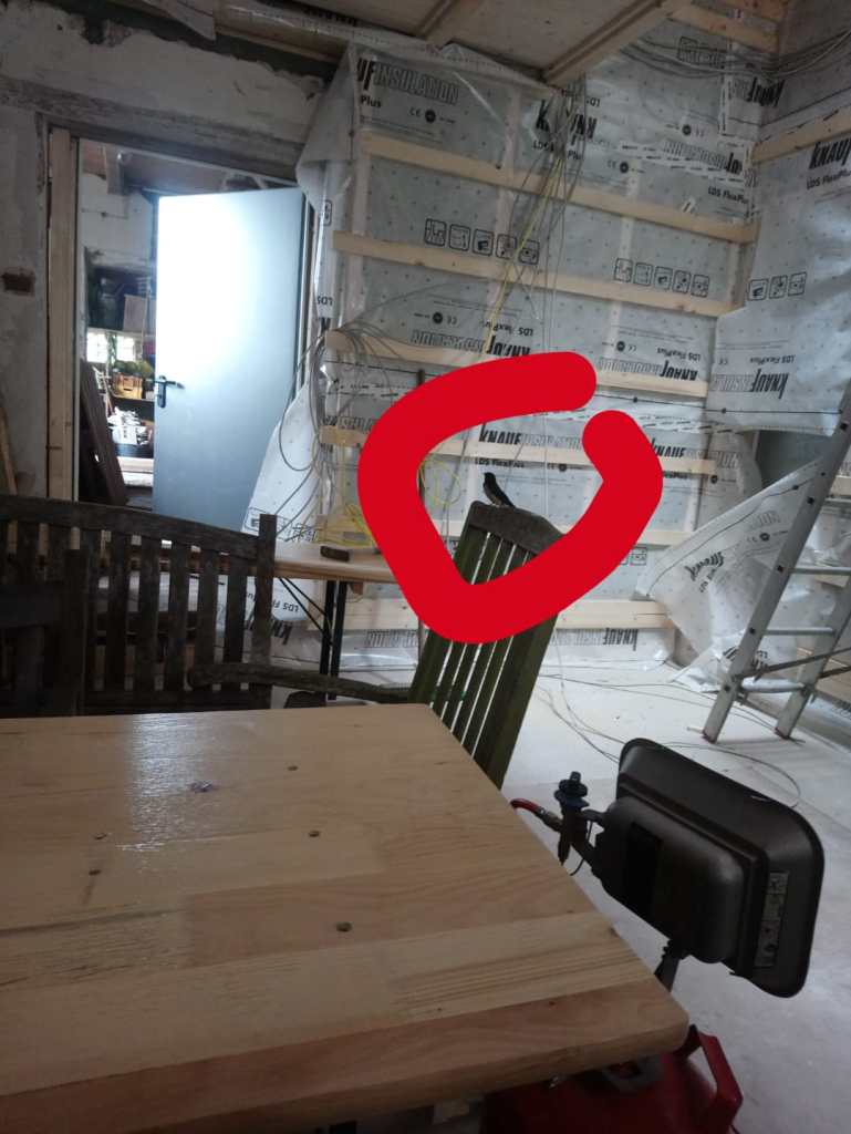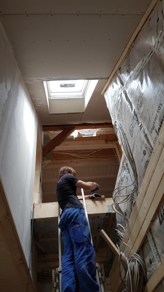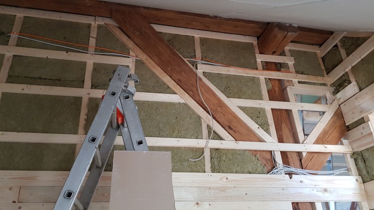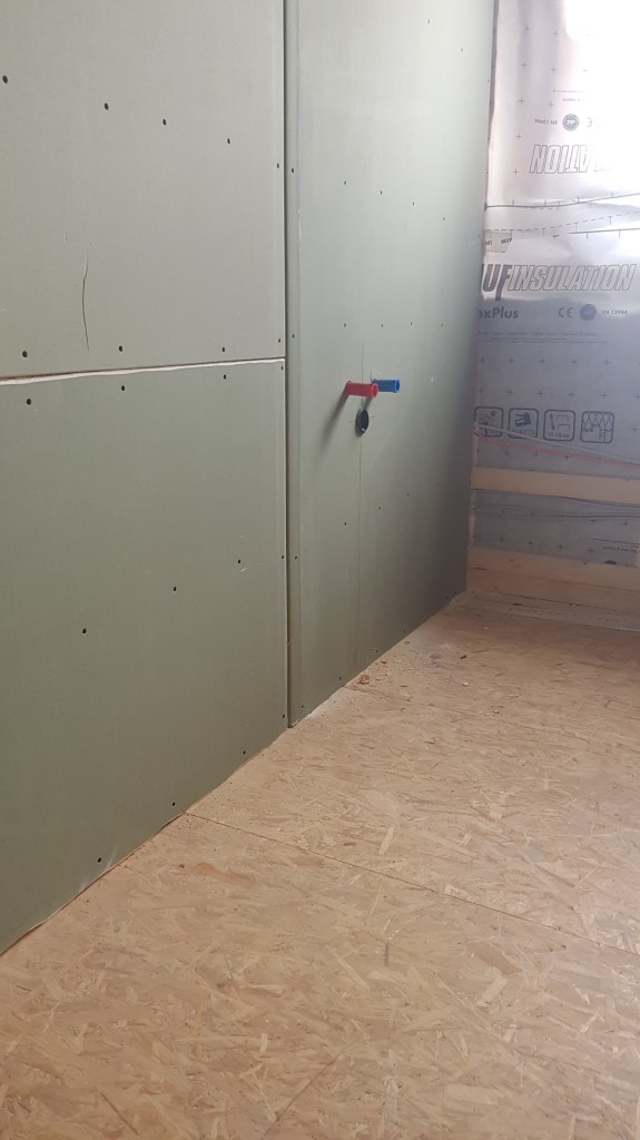 Überall ist nun Rigips und wir können spachteln.