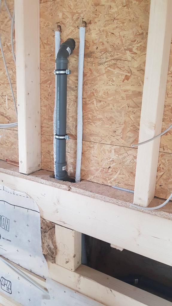 Die Rohre für den Heizkörper nach unten.