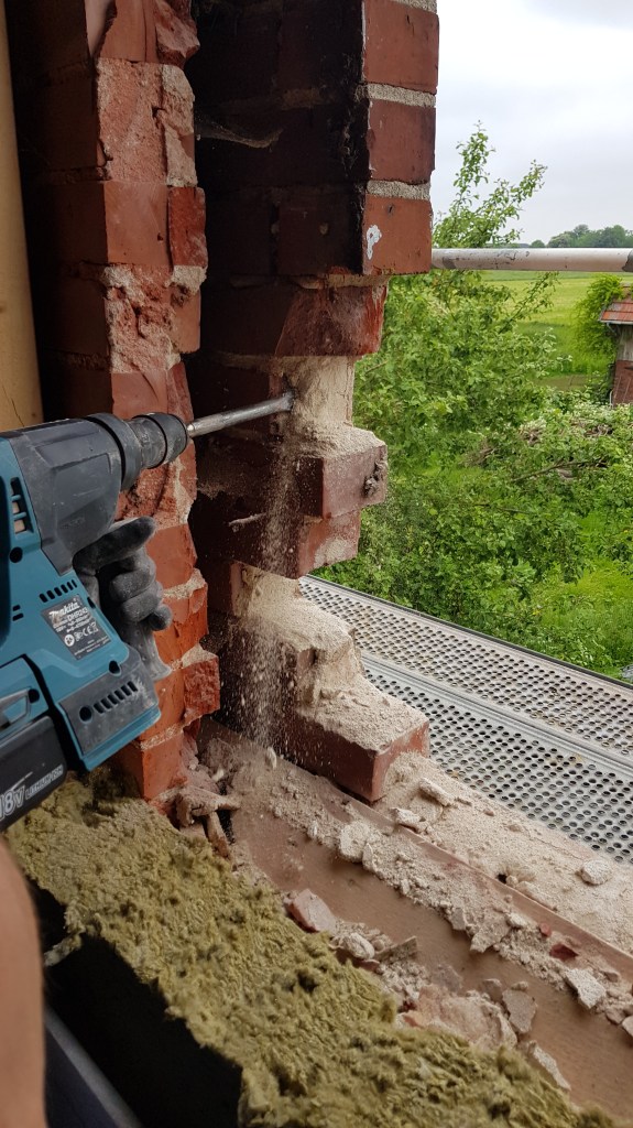 sind wieder drin! Jetzt muss noch verfugt werden. Dafür bekommen wir professionelle Hilfe.