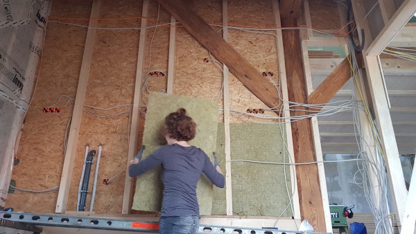 und mit Konterlattung verschrauben. Die Dampfbremse ist nur bei Außenwänden nötig.