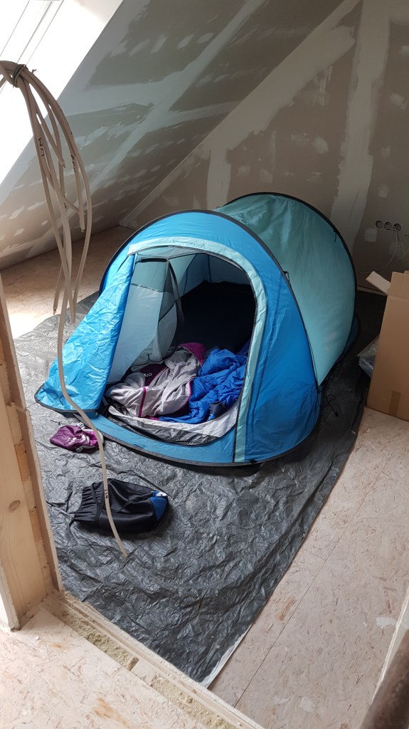 Und dann der erste Tag an dem wir in der Wohnung übernachten. Wenn auch im Zelt, wegen dem Staub.