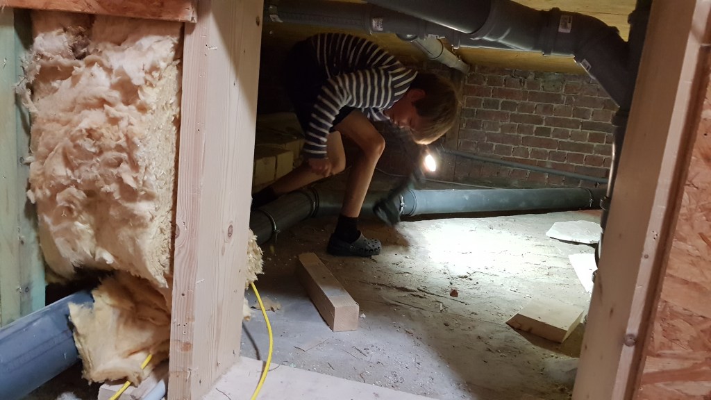 Gut, dass Finn noch nicht so groß ist und in die Zwischendecken passt.