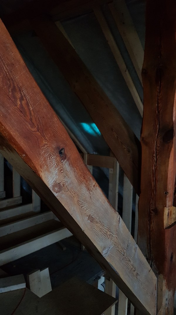 Die Arbeit lohnt sich, da wir am Ende einige alte Balken in der Wohnung sehen werden. Zudem ist es ein besserer Schutz gegen den Holzbockkäfer.