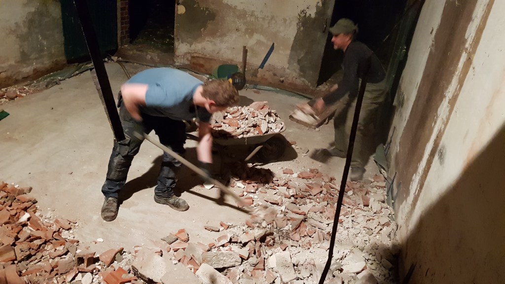 Manu und Jens am Decken(Boden)schutt schippen. Fast geschafft!