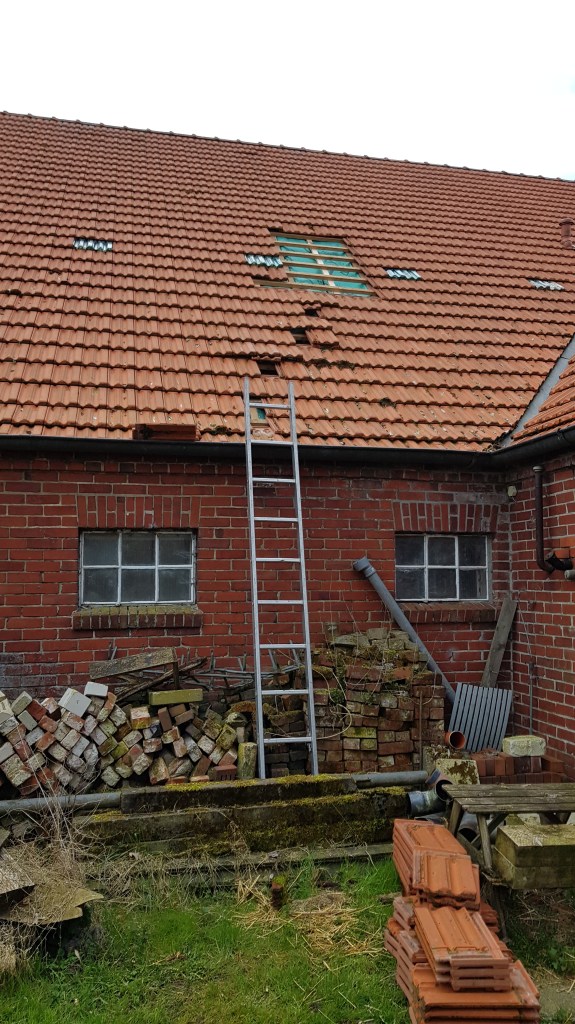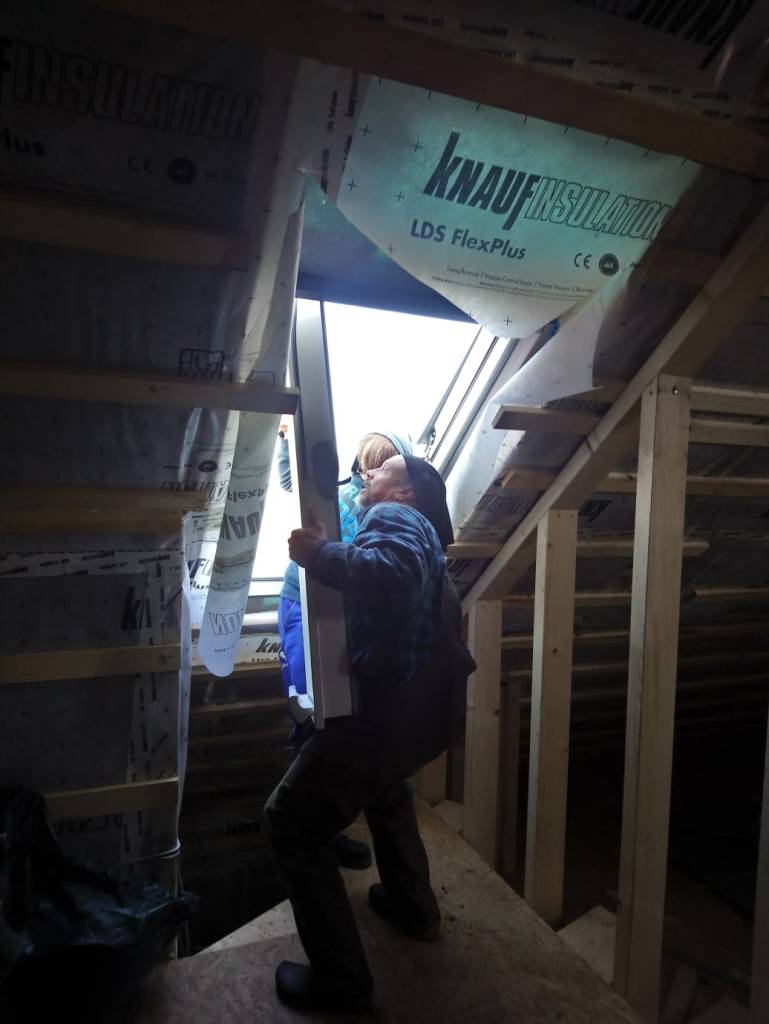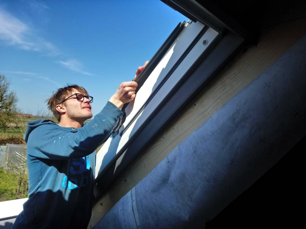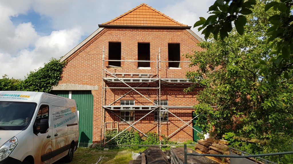 Ein paar Tage später sind alle Dachfenster eingebaut. Links das Schlafzimmerfenster, in der Mitte das Flurfenster zur Stube, rechts das Badezimmerfenster und oben das Bürofenster!