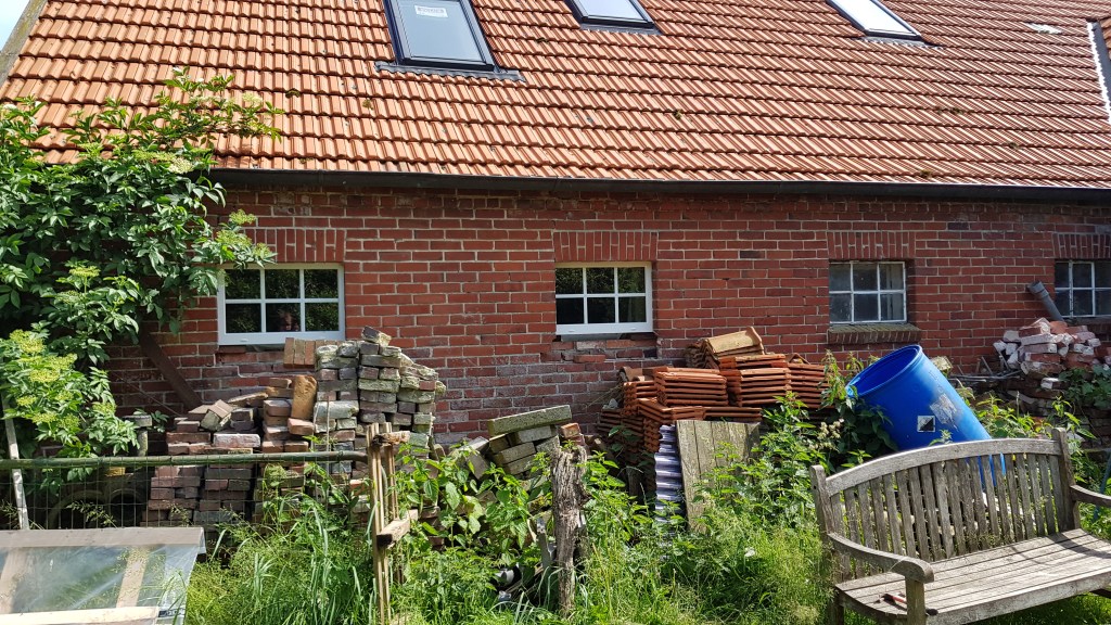 Unten, wo die beiden Fenster fehlen, kommen neue mehrfachverglaste Fenster rein. Das ist unser Eingangsbereich.