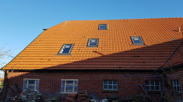 Ein paar Tage später sind alle Dachfenster eingebaut. Links das Schlafzimmerfenster, in der Mitte das Flurfenster zur Stube, rechts das Badezimmerfenster und oben das Bürofenster!
